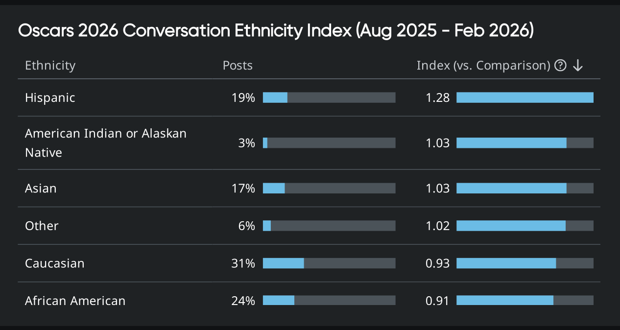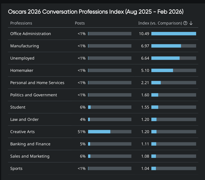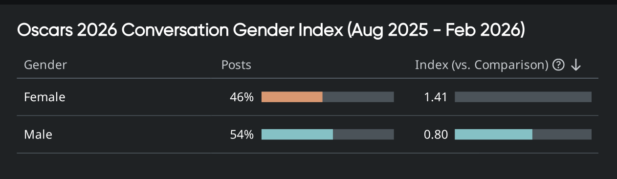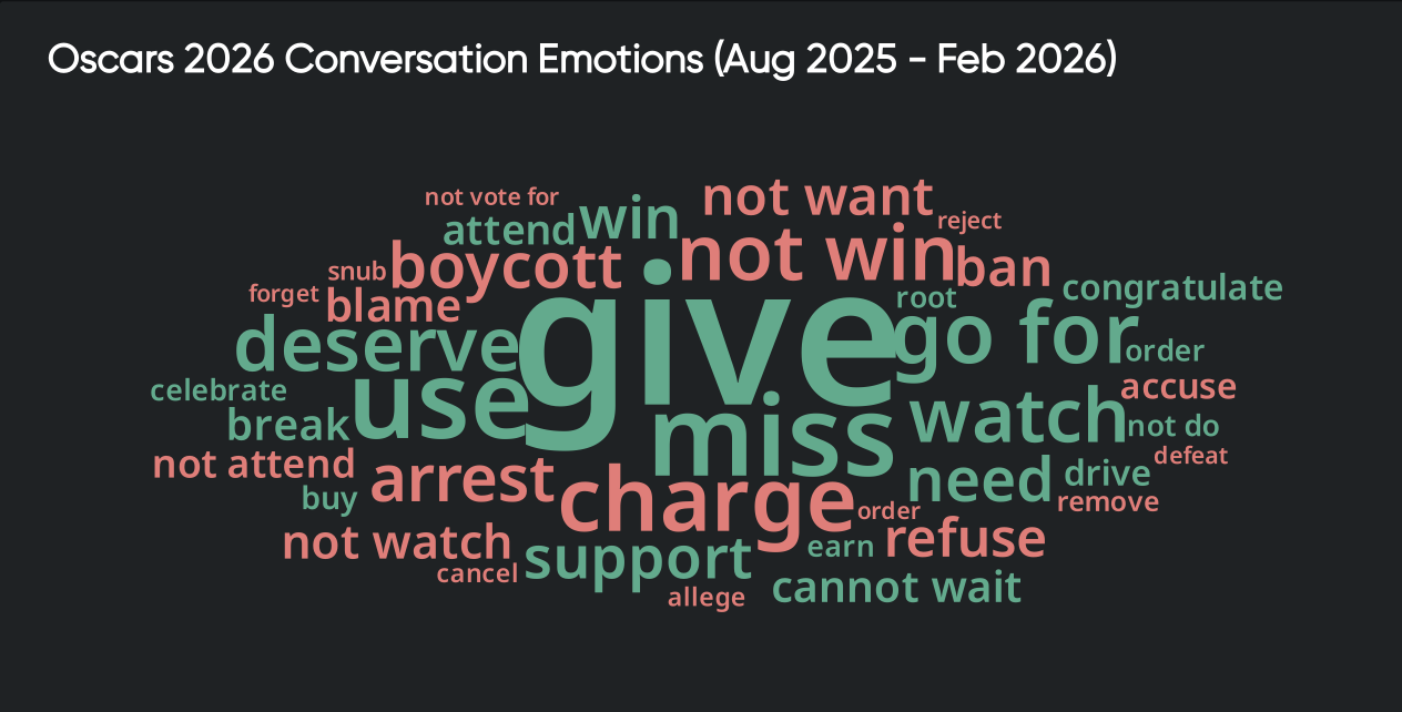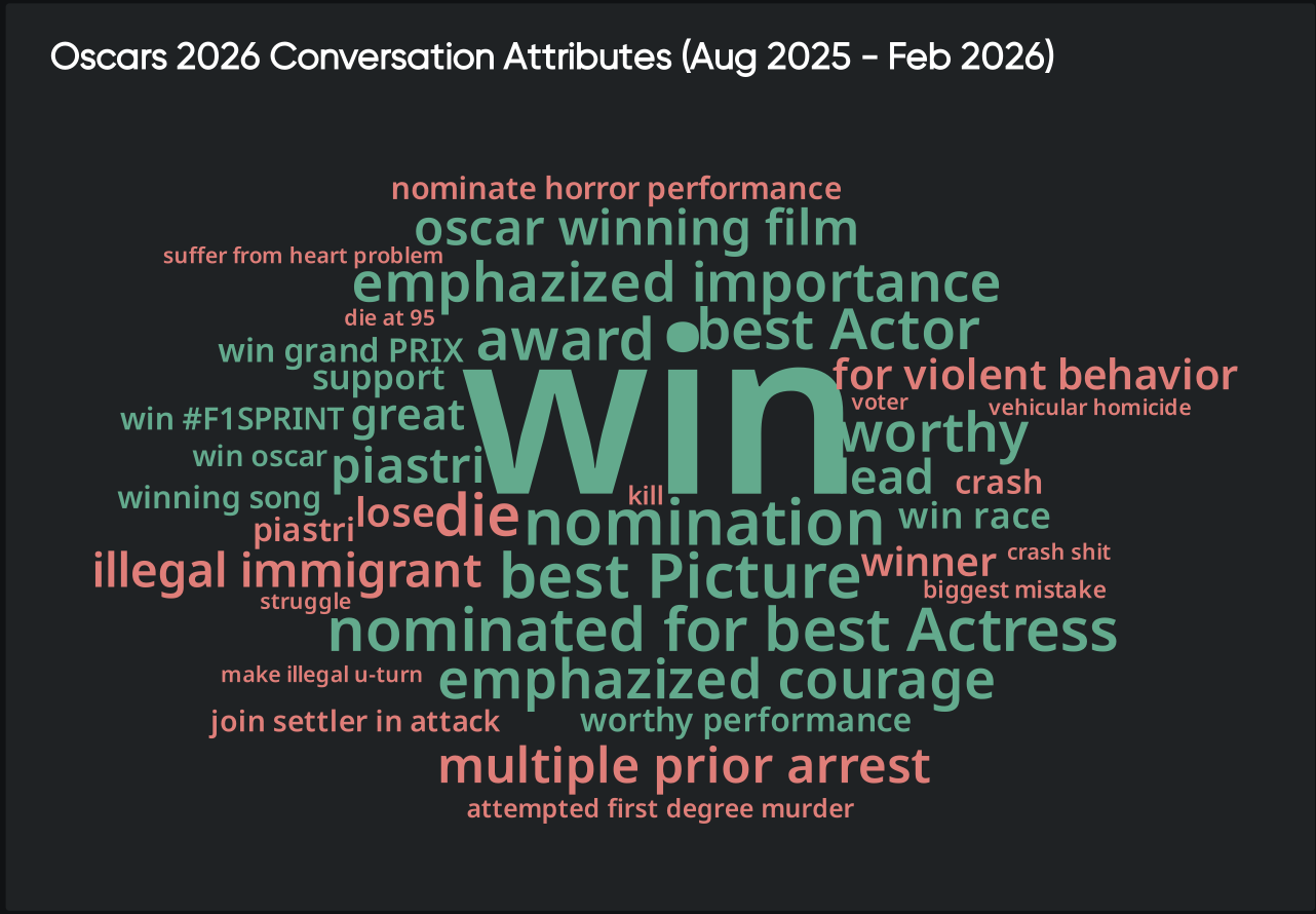 From August 2025 through February 2026, Oscars discussion reached significant scale and settled into clear patterns. Volume is high. Tone is predominantly neutral. Participation skews younger. Attention is spread across multiple themes rather than concentrated around one film or controversy.