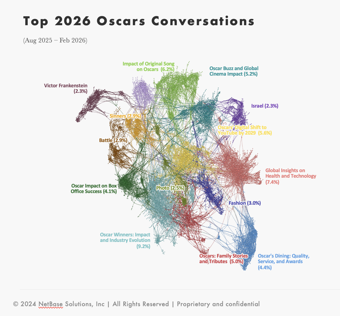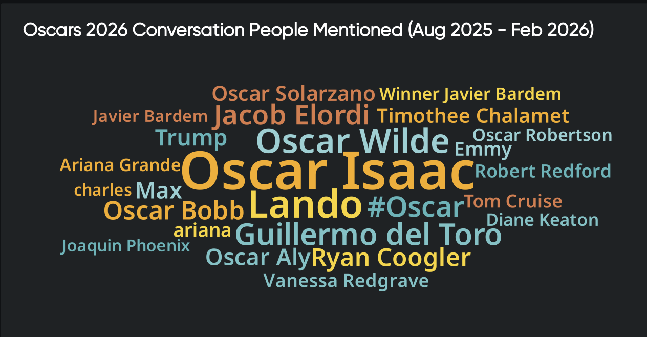The Oscars conversation is already organized. It is multi-threaded, visually driven and anchored to specific calendar moments. That structure creates measurable signals well before the ceremony itself.