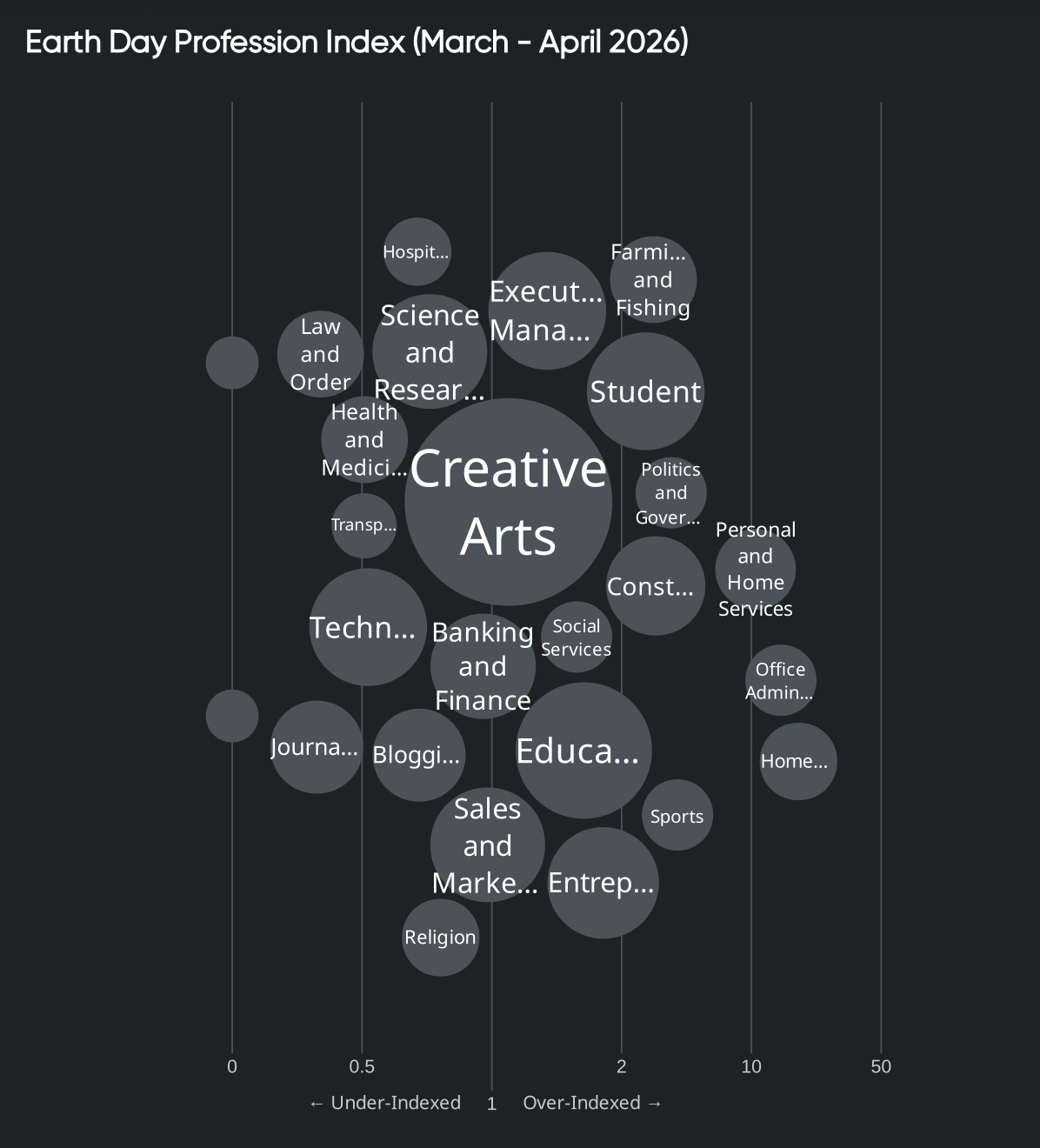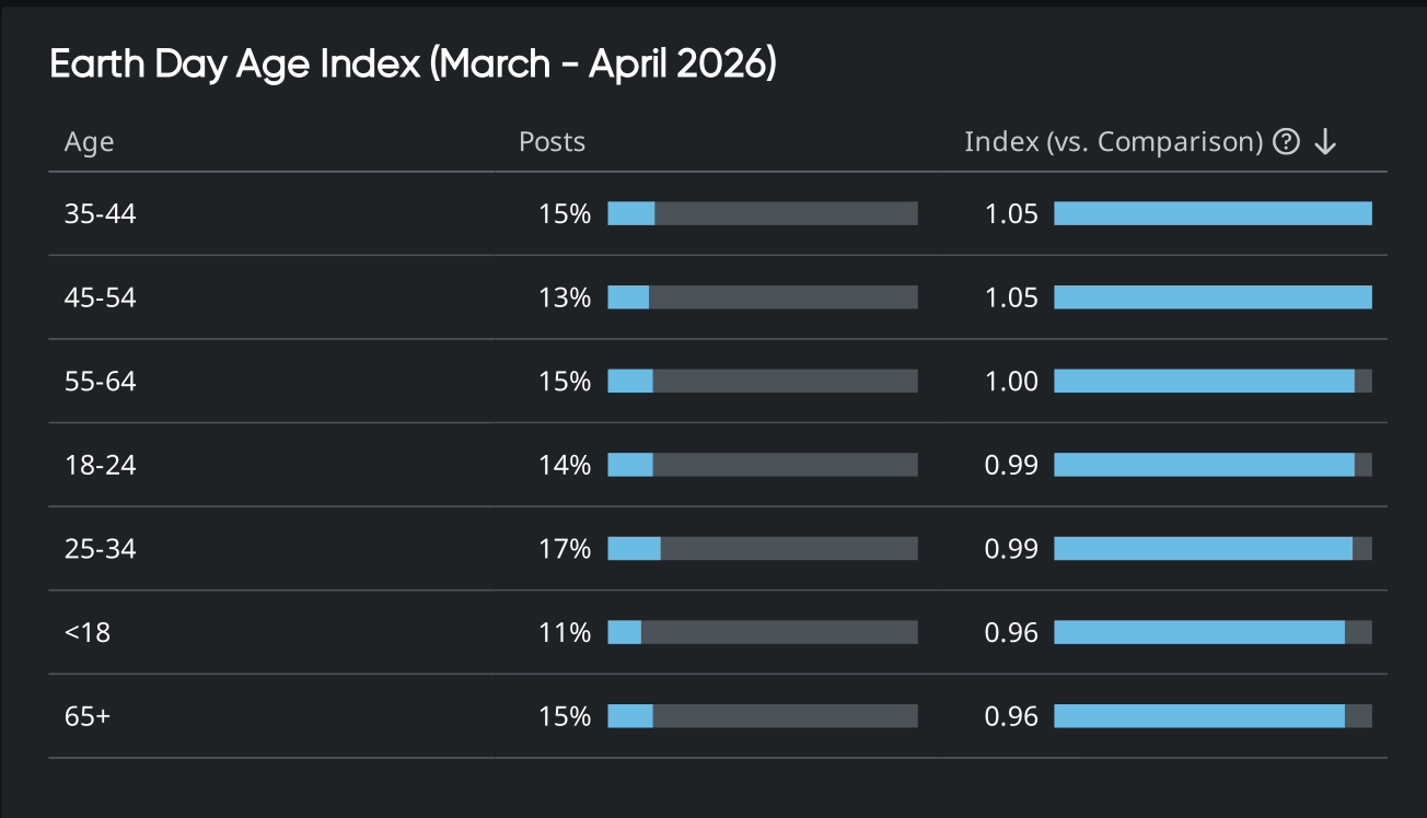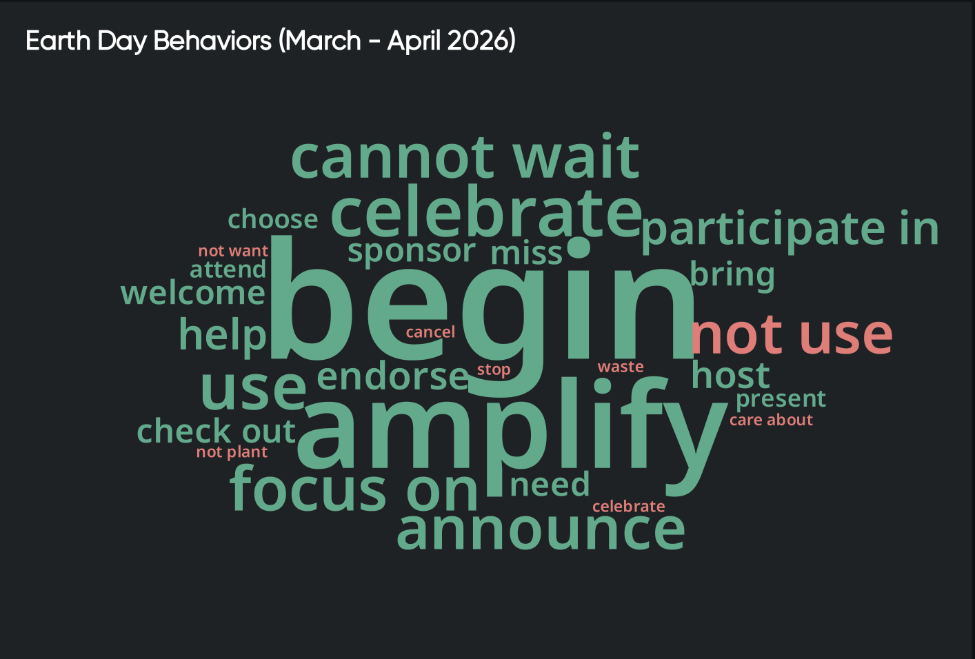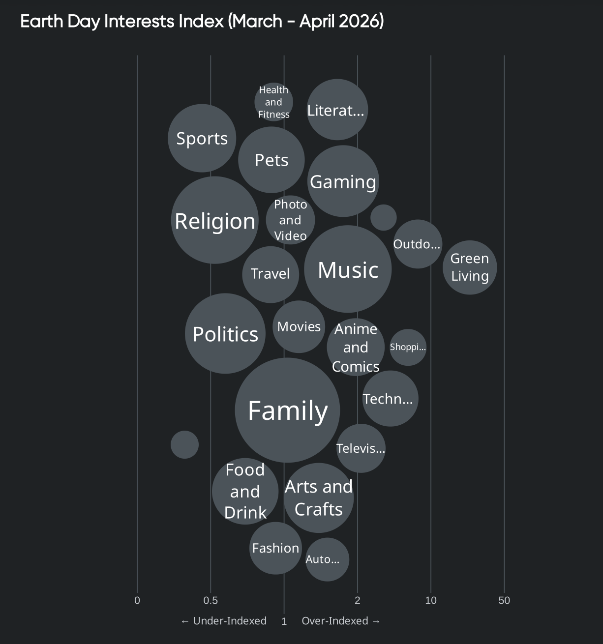 That does not mean people do not care. It means Earth Day has become expected. It has been built into the annual cycle of content, participation, and brand activity. This is a normalized moment of engagement.